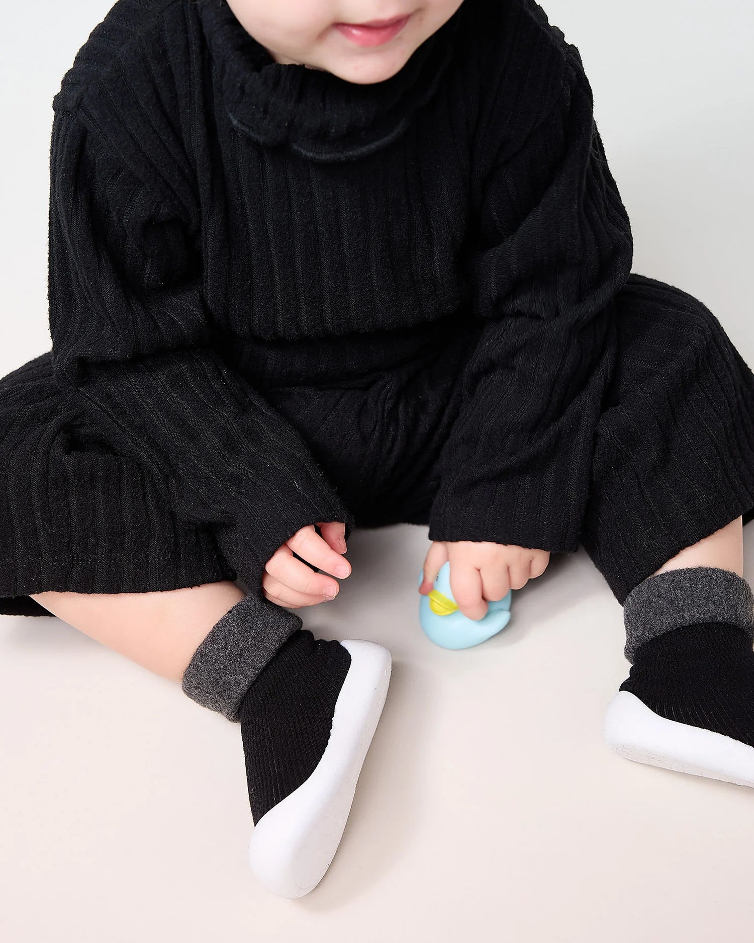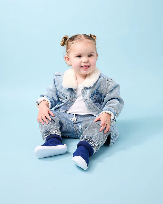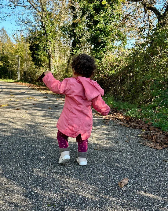 Les chaussures deviennent alors indispensables, mais elles doivent imiter au mieux la marche pieds nus pour ne pas gêner l'apprentissage, tout en offrant confort et protection. Ce type de chaussures est appelé chaussures barefoot, comme les Steppy, conçues pour respecter cette liberté tout en gardant les pieds au chaud et protégés.
