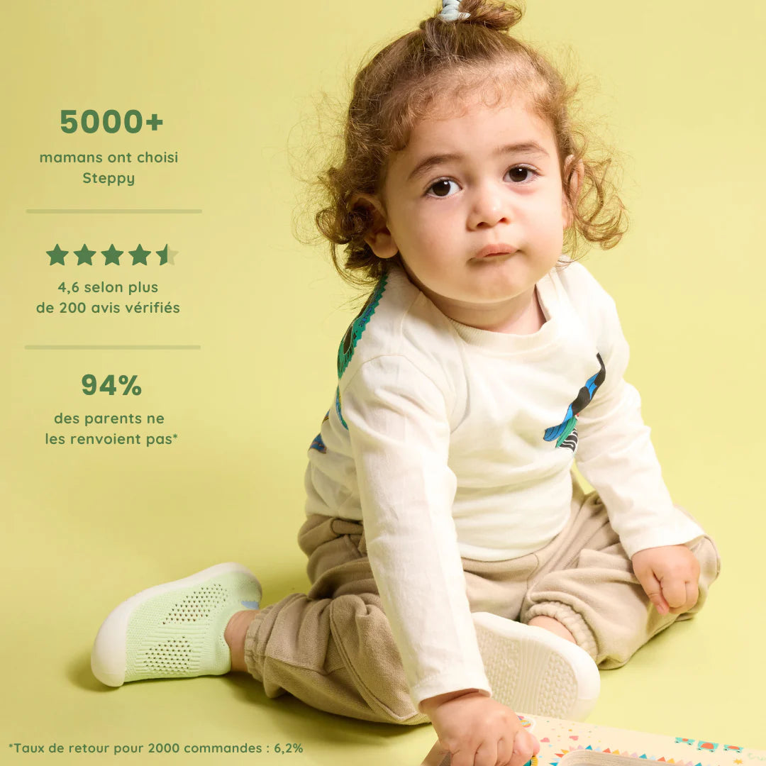Les Pas Doux accompagnent idéalement les enfants dès les premiers pas et jusqu'à 3 ans, couvrant ainsi les besoins des enfants en phase d'apprentissage de la marche jusqu'aux jeux dynamiques.Elles offrent une base optimale pour le développement et la motricité, conçues spécifiquement pour encourager le mouvement naturel du pied à chaque étape de la croissance.