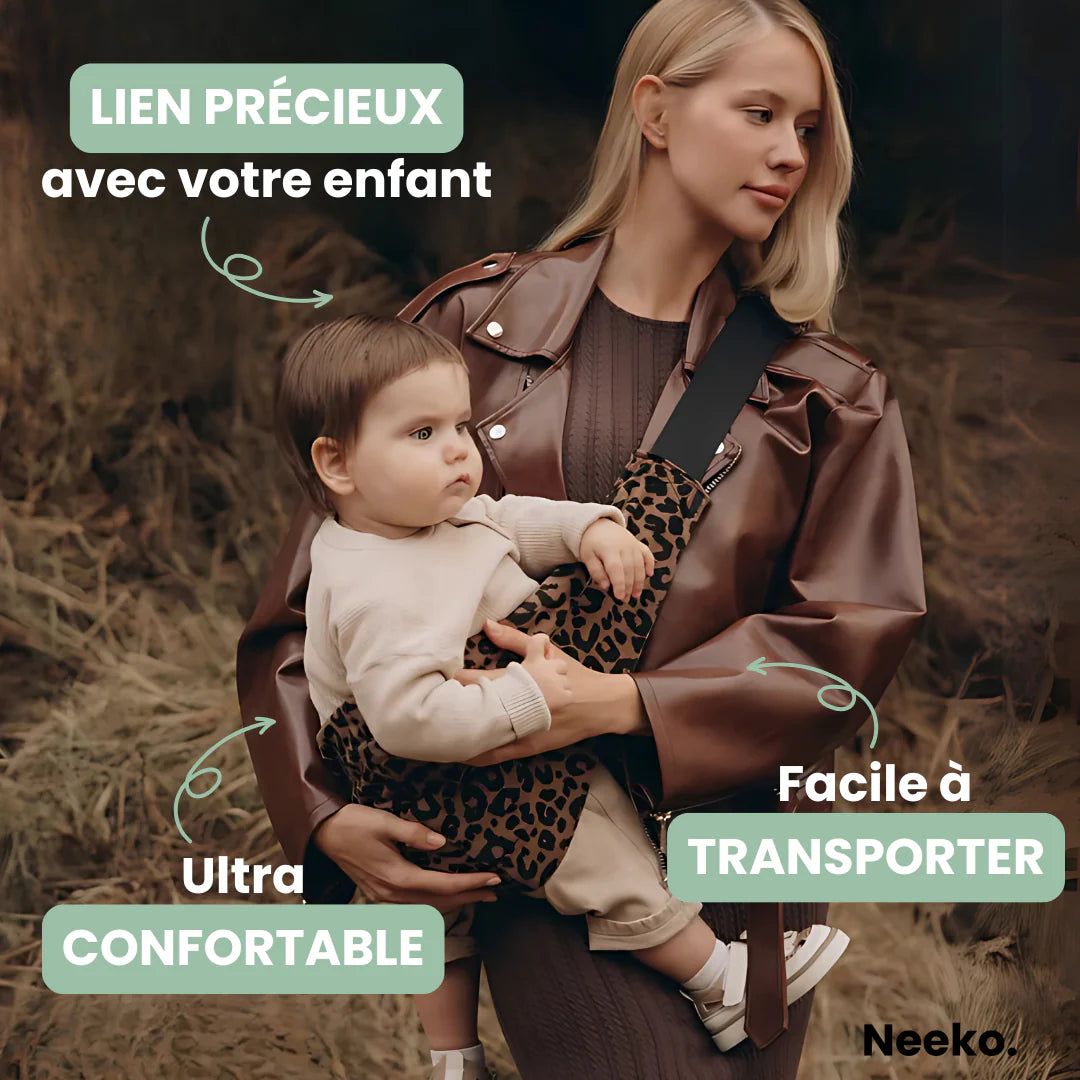 Le Porte-bébé agit comme une aide au portage, permettant de soulager le poids de vos bras, de votre dos et de vos hanches, et de le transférer dans le porte-bébé à la place.